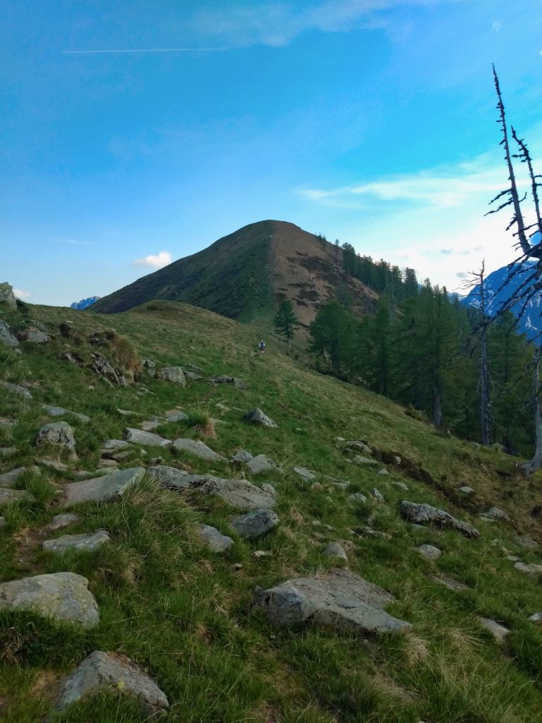 In the twilight, we decide that crossing the pass and the ridge over Cimone di Cortechiuso and Cima Marsicce at over 2100 m is not feasible with our equipment and planned a deeper crossing over the Bochetta di Terza at 1836 m. There should be, seemingly and with the exception of two larger snowfields, the transition to Val Grande possible. However, this also meant that we either had to make another strenuous day with many vertical meters to stay on schedule, or that the following day we would only descend to Alpe Vou (Rifugio du Francia) and take a half-day break there. A look around and the plan was set: a Nearo at the Alpe Vou! The lost half day we should able to recover on the last two days.