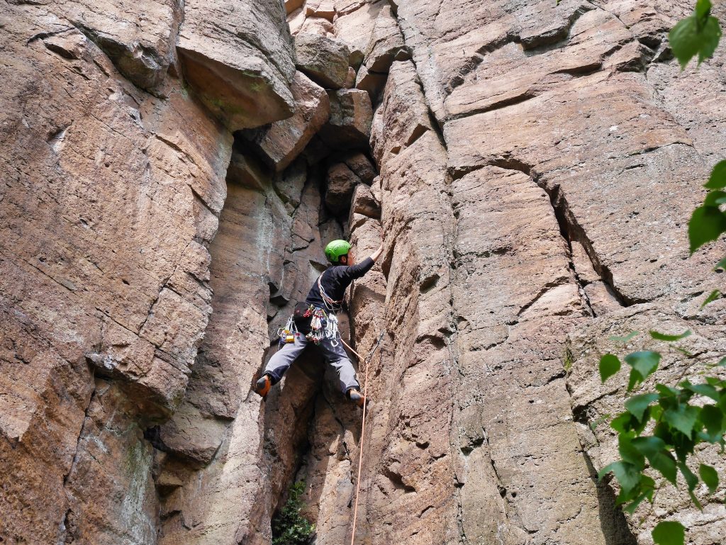 So I was allowed to try out during our visit directly in Trad-Climbing and rose the one or the other IIIer-Kamin and IVer-Verschneidungen with proper fluttering (the nerves), but also massive jingling (of the material) briskly before. Well, brisk would be a bit over the top. Carefully, it's more likely. In any case, I used the bored stands but thankfully. At least something boring, for abseiling then, there comes on (high) mood. Guys, it was fun, I'll be back.