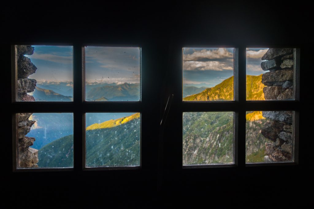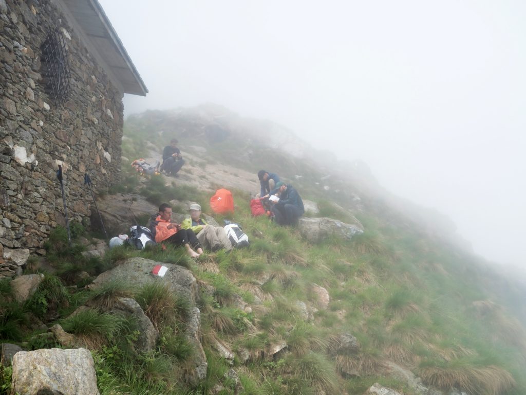 Es beginnt zu nieseln, ich bin mir nicht sicher, ob das jetzt Abkühlung bedeutet oder ich doch meine Regenjacke überziehen soll. Laut Karte sind es noch ein paar Höhenmeter und wir müssten am Tagesziel, dem Rifugio Curgei, ankommen. Tatsächlich taucht dies bald aus dem Nebel auf. Aber was bedeutet schon “bald” auf einer mehrtätigen Wandertour wie dieser. Eine kurze Erkundungstour: Brunnen, Haus mit Küche, Schlafplätze oben, sogar etwas trockenes Holz, eine Toilette und im Nebenhaus noch etwas mehr Holz. Direkt entzünden wir im alten Ofen ein knisterndes, wärmendes Feuer, ziehen uns um und richten uns gemütlich ein.