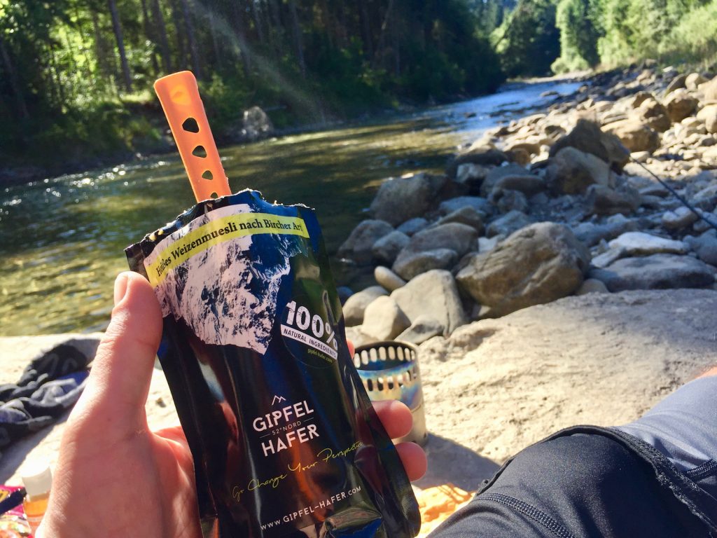 After the midday heat we shoulder our backpacks and find our way down to the Ammerschlucht at the Ammer directing, That's how hiking trails have to be! Woody, mossy, trailig, a constant ups and downs. We drink Ammerwasser, and look for a flat patch of soil for the night. But we have time, and so we can either choose the nicest place or just keep running until dusk. In the high grass at Scheibum we sleep in the forest. The next morning we leave a lot of time, down here it was damp, everything is covered by thick drops of condensation water and the morning sun needs something to reach us over the tops.