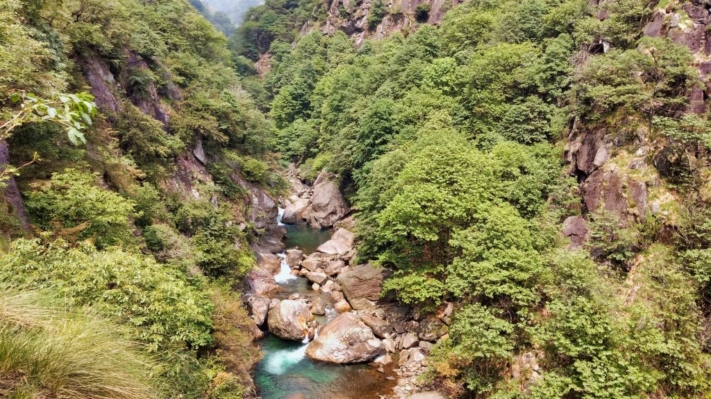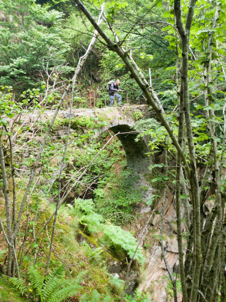 From Pogallo the path - created by Sutermeister and therefore called "Strada Sutermeister" - is now clearly touristy, including boards that inform about life and work in ancient times here in the valley. Also fauna, flora and the different rock formations as well as their origin are explained. To Cicogna Cross over new suspension bridges and old, stone colossi the rushing river Rio Pogallo deep down in the gorge several times, again and again, breathtaking views open into the wild, rugged valley cut.