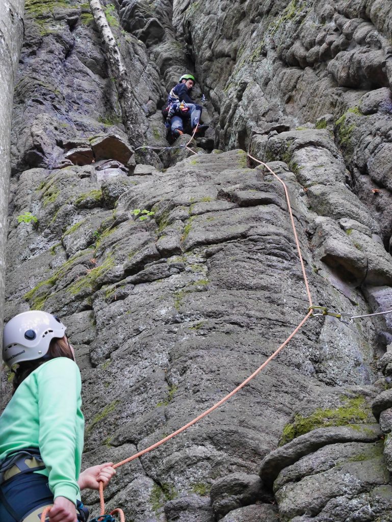 So I was allowed to try out during our visit directly in Trad-Climbing and rose the one or the other IIIer-Kamin and IVer-Verschneidungen with proper fluttering (the nerves), but also massive jingling (of the material) briskly before. Well, brisk would be a bit over the top. Carefully, it's more likely. In any case, I used the bored stands but thankfully. At least something boring, for abseiling then, there comes on (high) mood. Guys, it was fun, I'll be back.