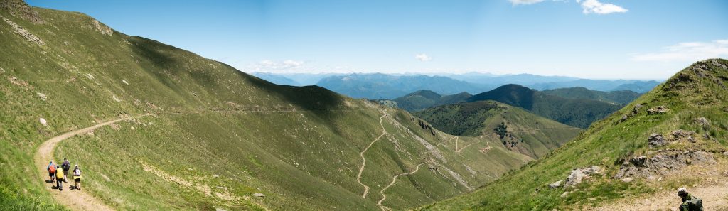 Kurzentschlossen hängen wir die morgige, letzte Etappe noch dran und latschen los. Um diese letzten 13 Kilometer noch vor Einbruch der Dunkelheit zu schaffen, drücken wir auf’s Wandergaspedal. Wir lassen Il Colle hinter uns und kommen zu Cima di Morissolo. Diese steil über den Lago Maggiore aufragende Klippe ist durchlöchert, war doch hier ein altes Munitionslager. Eine kurze Erkundungtour später marschieren wir durch bis Piancavallo, wo dankenswerterweise noch ein Espresso für mich und Bier und Cola für die Anderen drin ist. Die kleine Bar schließt, nachdem wir ausgetrunken haben.